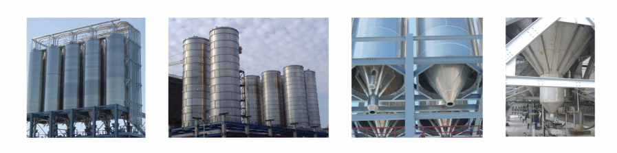 廣泛應(yīng)用于石化、化工、建材、冶金、電子及新材料等多個行業(yè)。如PP、PE、PC、PVC、環(huán)氧樹脂、石墨粉、合金粉、催化劑、塑料增塑劑、電解二氧化錳料粉等行業(yè)的大規(guī)模摻混操作,料倉體積有30m3、50m3、150m3、250m3、500m3、1000m3等不同規(guī)格。